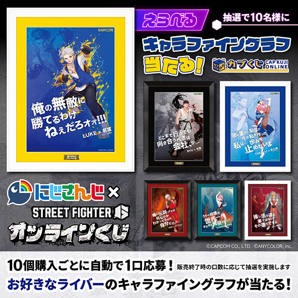 オンラインくじ「カプくじオンライン」に「にじさんじ」とのコラボ企画が登場。人気バーチャルライバーたちが「ストリートファイター6」のキャラクターにふんした限定オリジナルグッズがゲットできます。