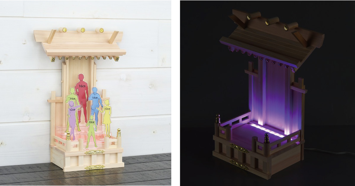はせがわ、推しに祈りをささげる祭壇「推し壇」発売 国産ヒノキ材を使った本物の神棚と同じ本格仕様で、20色に光る