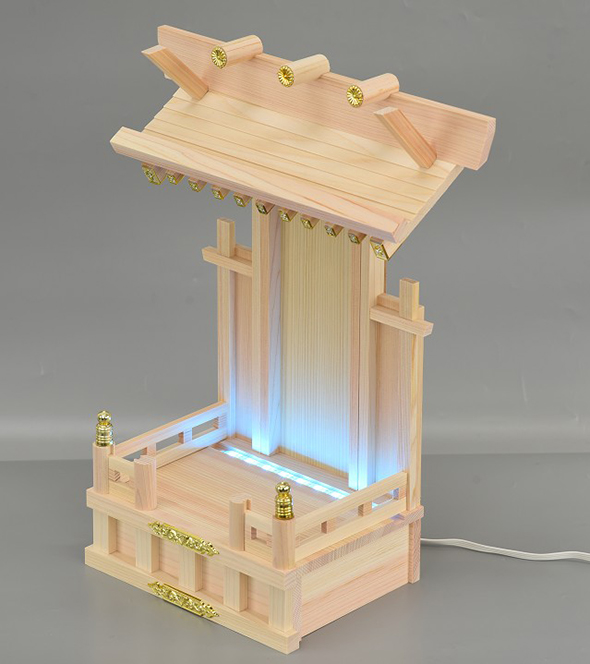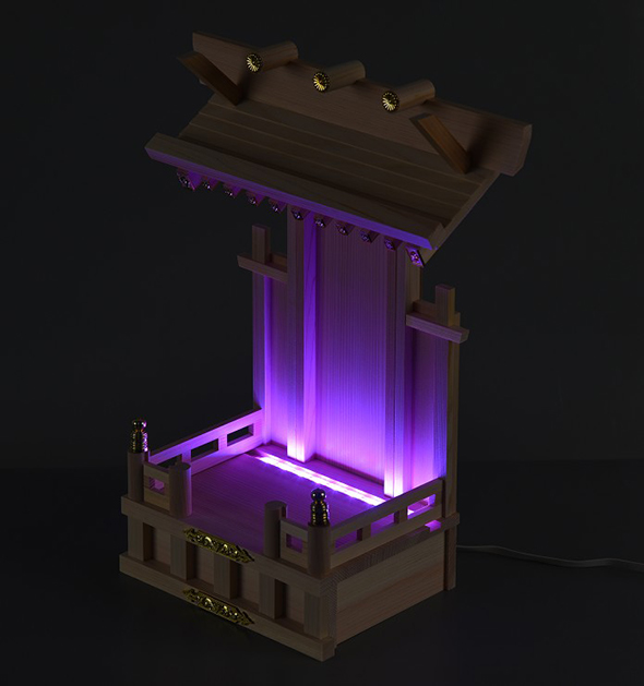 国産ヒノキ材を使用し、日本国内で製造された本物の神棚や祭壇と同じ仕様で作られており、屋根は飾るアイテムに合わせて高さを調節することが可能。また、20色21パターンのLEDライトが備わっていて、思い思いの祈りの空間を簡単に作れるとのこと。