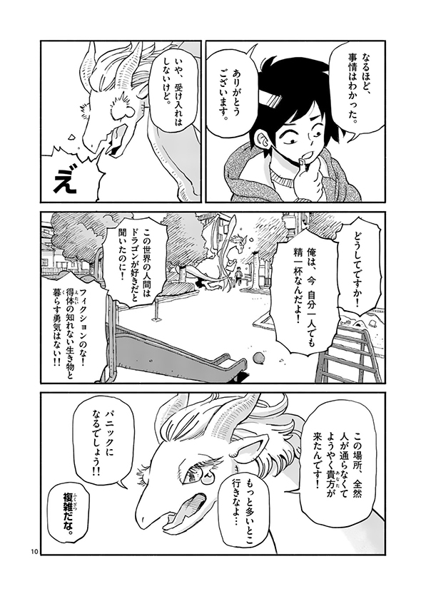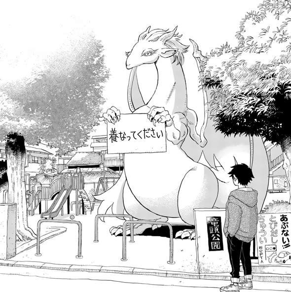 男子大学生が出掛けたら公園にドラゴンが立っていて…… ちょっぴりファンタジーな日常生活にほっこりするマンガ「ドラゴン養ってください」