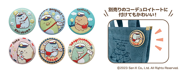 「刺繍缶バッジ」(700円)。ランダム封入で全6種。「刺繍缶バッジコンプリートセット」(4200円)も販売