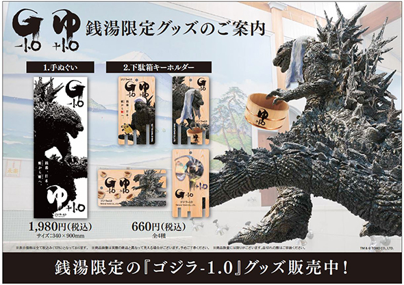シリーズ最新作「ゴジラ-1.0」(ゴジラマイナスワン)が11月3日に上映されることを記念したもの。千葉県、東京都、神奈川県、富山県、石川県、岐阜県、愛知県、三重県、京都府、大阪府、兵庫県の一部の公衆浴場(銭湯)で、限定ののれんやポスターが掲載されます。
