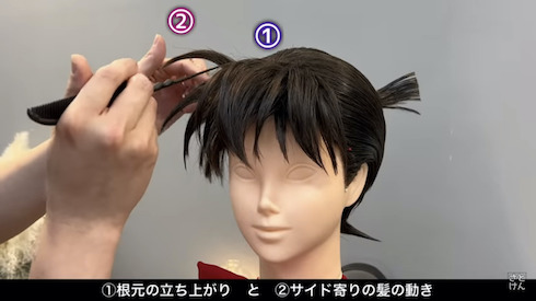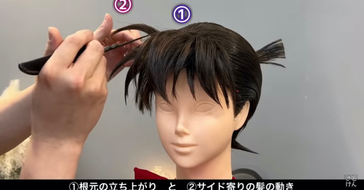 投稿者は美容師のさとけん(YouTube関連記事)さん。今回リクエストを受けた江戸川コナンは、どの角度からでも同じ形に見えるという不思議なヘアスタイルですが……?