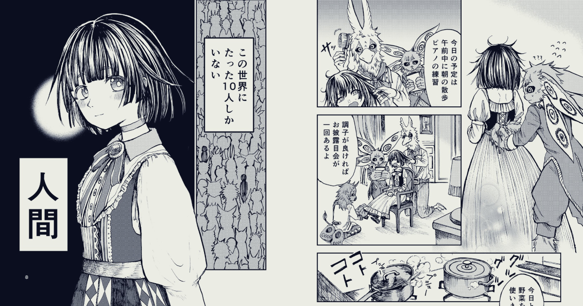 読者から「とても面白かったので色んな人に読んで欲しい!」「人間も動物に同じことをしているのかと思うと、切ない話 幸せってなんでしょうね」「まさに心を奪われました…!! 世界観も絵も表現も全て好きです」などの声があがる本作について、作者・灯晴ほくさん(@kikaizikakeno)にお話を伺いました。