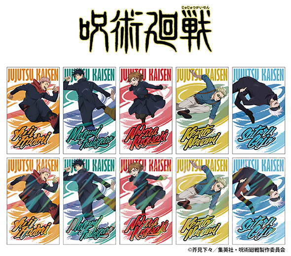 「呪術廻戦」パルクールをする虎杖、伏黒ら5人の描き下ろしグッズ、アニメイトで発売 購入特典のトレーディングカードも