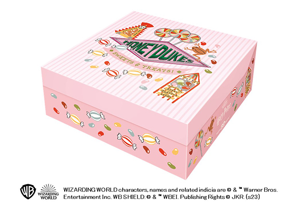 「ハニーデュークス セット」は、コラボフレーバー「ホグワーツ ハウス ディライト」1個と、好きなアイスクリーム8個(計9個)を専用デザインのカップで提供してもらえるセット。ボックスに百味ビーンズ、カエルチョコレート、爆発ボンボンなどがあしらわれているほか、ハニーデュークスデザインのオリジナルブランケットが付いてきます。