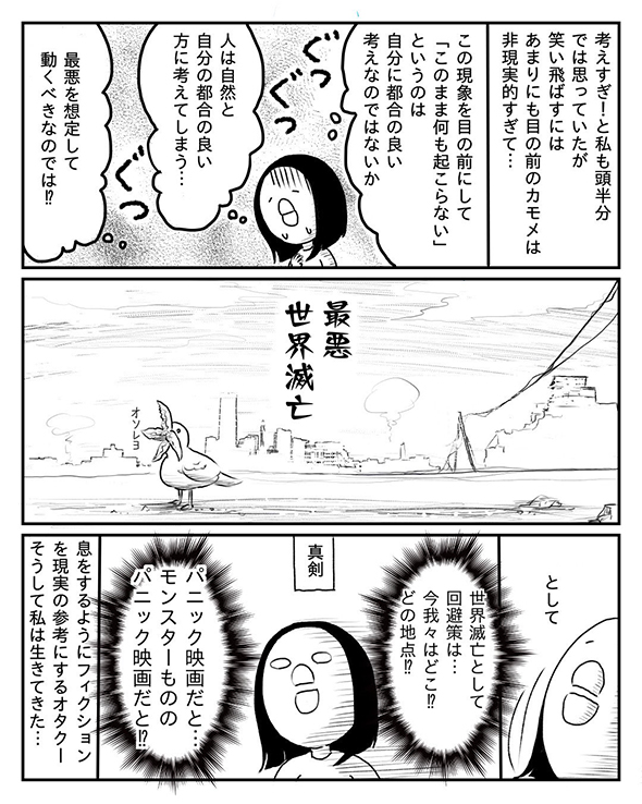 カナダでパニック映画のモンスターのようなカモメを目撃――― そんなエッセイマンガ『カナダで世界の滅亡を感じた話』がX(旧Twitter)で話題になり、約2万いいねを獲得しています。