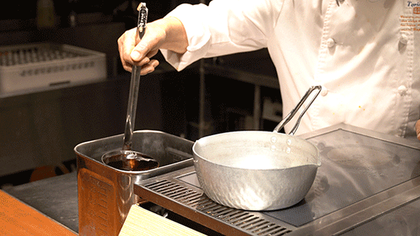 注文が入ってから、だしを温めて鴨肉に火を通す