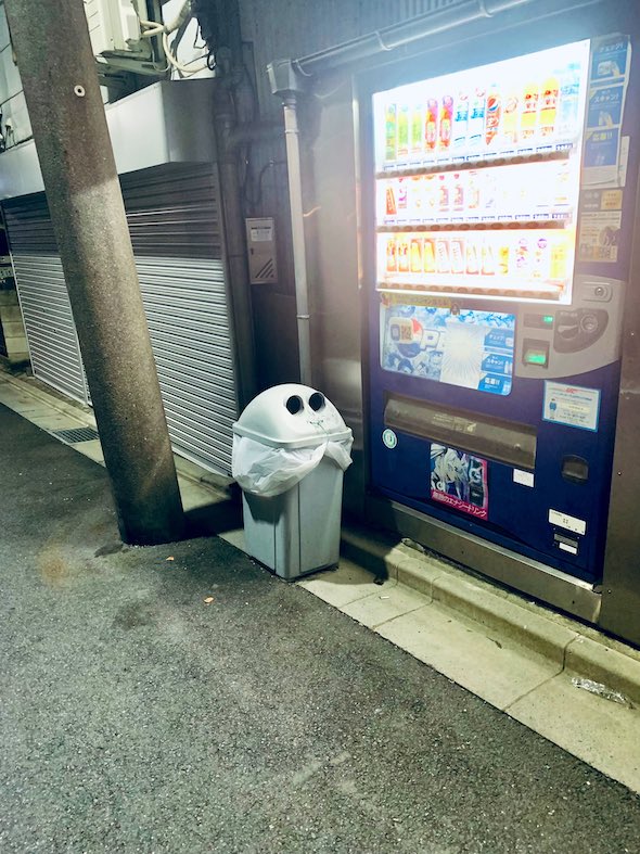 話題になっているのは、看板作家の上堀内浩平 (@miduno_me)さんが投稿した、自動販売機の横に設置されたゴミ箱の写真。はみ出したゴミ袋が、ちょうど手を合わせているように見える形になっています。ゴミを入れる穴が目のように見えることも相まって、その姿は健気に祈りを捧げているかのようです。ゴミ箱の願いよ、天まで届け……!