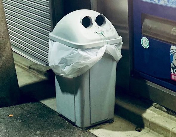 マナーが良くなりますように…… “お祈り”をしているように見える「ゴミ箱」が健気でかわいいと話題