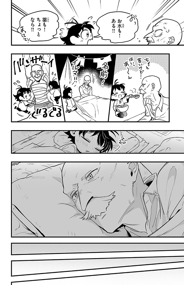 サリバンが暮らすマフィアの本拠地は拷問部屋があるような物騒な場所。中をのぞくとスラム街で有名なチンピラ・オペラが拘束されており、優しすぎるイルマは、不器用ながらも「助けてあげて」とサリバンにお願いしますが、その言葉はうまく届かず―― 5歳のスラム街の少年は、予想外な人生を歩むことになったのでした。
