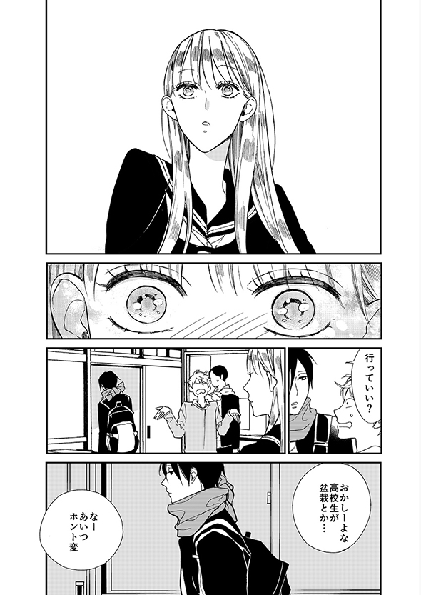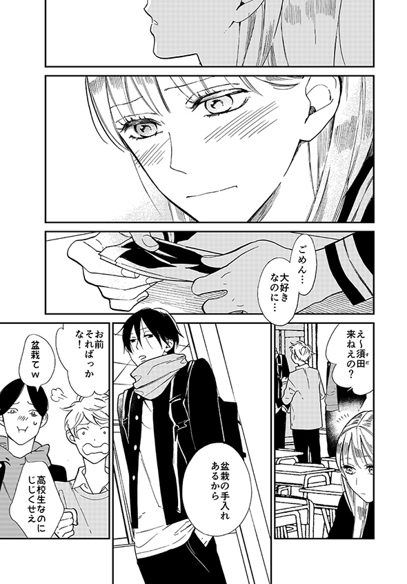 「高校生なのにじじくせえ」「死んだじいさんから貰ったらしいけど」「そんな狭い世界で生きててどうすんの?」。同級生からそんな言葉を投げかけられても「好きだからやってんだ」と意に介さない盆栽好きな男子高校生・須田。