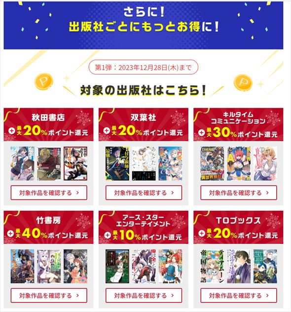 還元率がアップする出版社の例(特設サイトから)