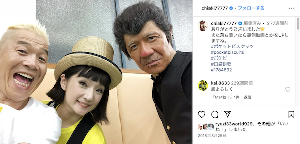 2018年8月、日本テレビ系「24時間テレビ41 愛は地球を救う」で一夜限りの復活をしたポケットビスケッツ(画像は千秋 公式Instagramから)
