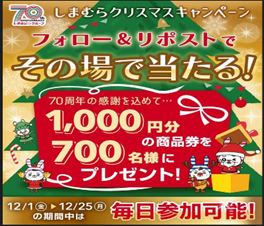 ファッションセンターしまむらは12月20日から、70周年歳末カウントダウンセールを順次開催します。