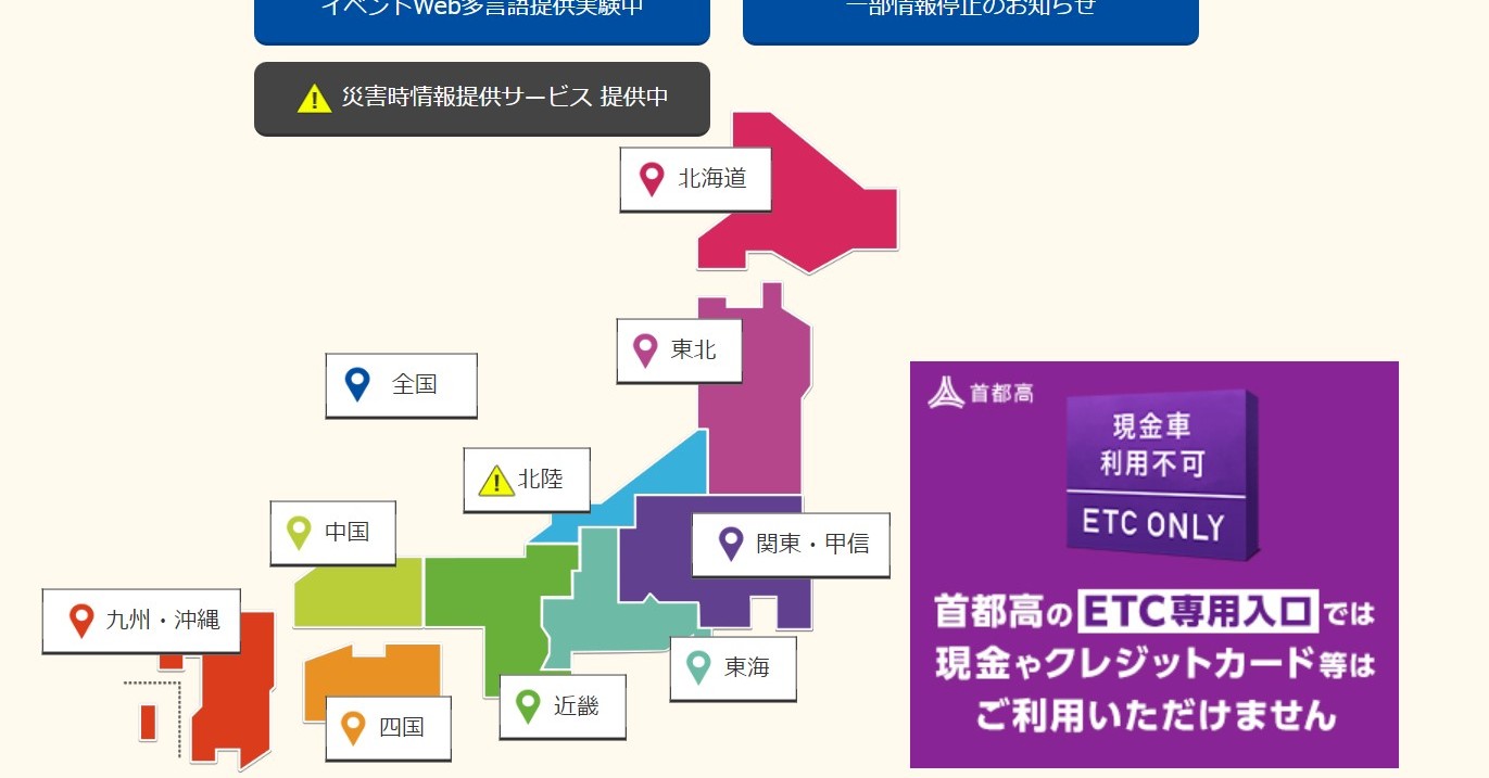 地震受け日本道路交通情報センターが「災害時情報提供サービス」開放(画像は日本道路交通情報センター公式サイトから)