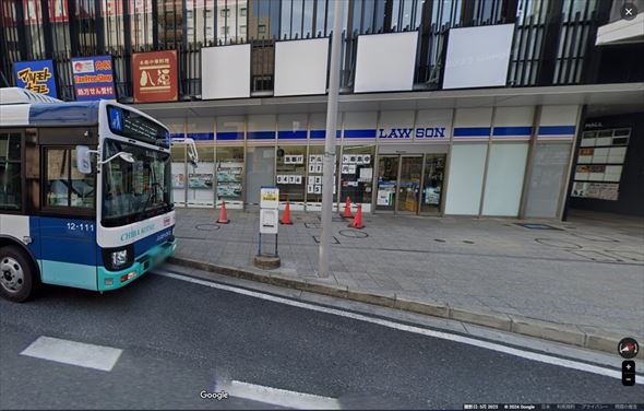 話題になっているのは、「ローソン成田駅東口店」(千葉県成田市)。「LAWSONこちら!!」の看板の先にあるのは、ローソンのロゴと利用時間が記載された白いドア。コンビニでよく見る、店内が見えるガラス戸とはかなり違う見た目となっています。