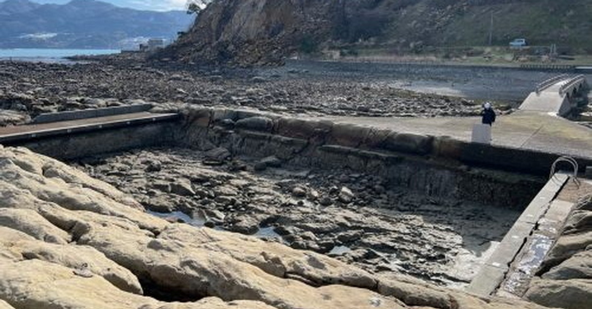 地震研によると、1月1日の地震により石川県輪島市光浦町から同河井町にかけて海岸が隆起。輪島市輪島崎町の竜ヶ埼灯台周辺には、岩礁を縦25メートル横13メートル削った文化遺産にもなっている「鴨ヶ浦塩水プール」があるが、約2.2メートルの隆起により海面より高い位置に移動し、完全に干上がっていることが分かった。