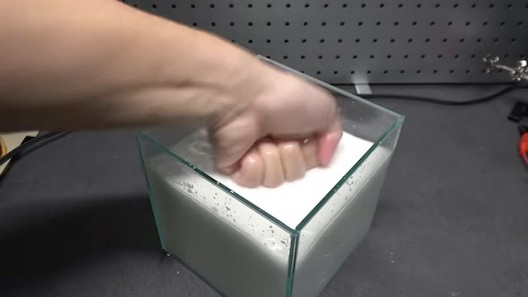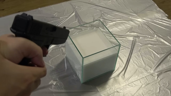 衝撃で固くなる液体に強力なエアガンを撃ち込んでみたら…… “まさかの実験結果”が「面白い」「すごい」と反響