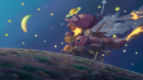 CMでは、「ハウルの城」に良く似た城が「ヤッホー」と火を吹きながら歩いていく姿が描かれています。絵コンテは宮崎駿さん(※崎は正しくはたつさき)、演出・原画は「ハウルの動く城」で作画監督を担当した山下明彦さん、美術は「ハウルの動く城」で美術監督を担当した吉田昇さん。