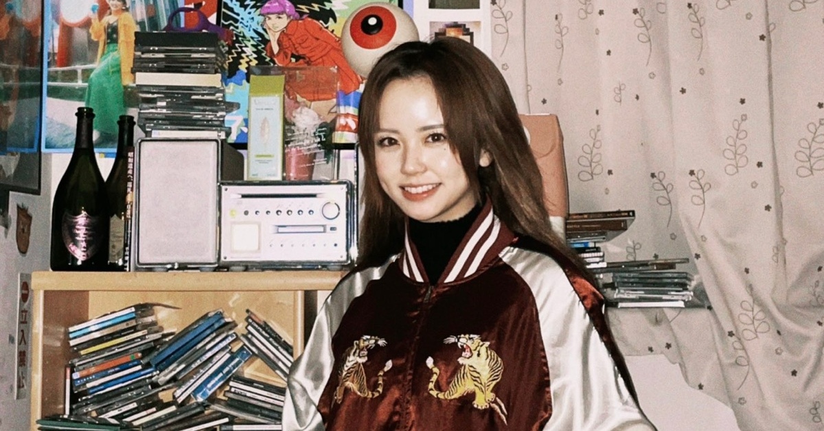 「私の部屋です」と投稿された写真には、愛用しているというKENWOODのコンポと、棚にたくさん積み重なったCDが収められています。背景には、1988年公開のアニメ映画「AKIRA」のポスターや、目玉おやじのフィギュアなども。スカジャンを着た阪田さんが、使いきりカメラで撮影したような写真の雰囲気にぴったりで不思議と郷愁を覚えます。