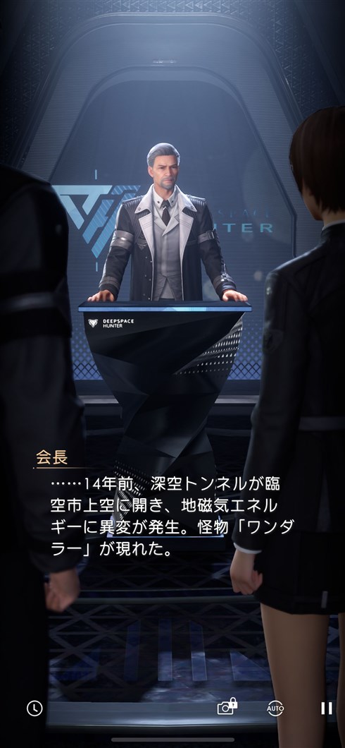 ここまで自分がプレイしているのが本当に恋愛ゲームなのか疑わしい展開が続いてきたのですが、深空ハンターとなった主人公が参加した初の任務で謎の男性に出会います。すると、突然現れた編成画面と「戦闘時は画面が横向きになります」というメッセージの後にロードされた画面には、本格的な3Dゲームが。