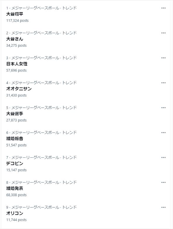 大谷選手の結婚発表でXでは「大谷ロス」もトレンドに 「明日有給とさせてください」投稿も
