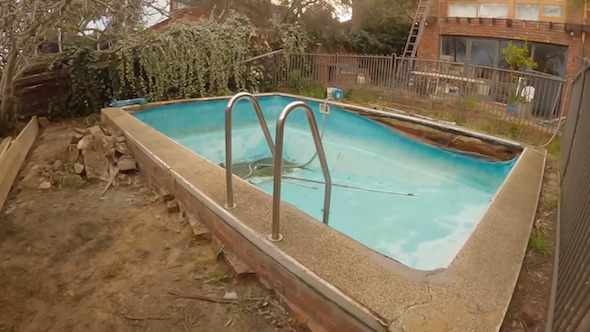 投稿者は、オーストラリアでコンクリート除去業を営むStan(@demostan)さん。依頼を受けて訪れた現場は、長年放置されていたとおぼしき、ボロボロのプライベートプール。撤去工事の依頼を受けて、たった1人で作業に取り掛かりました。