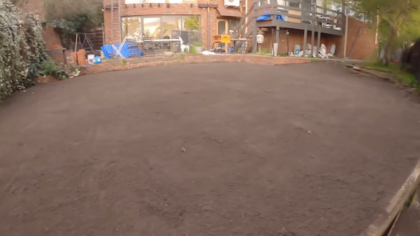 最後に土をかぶせてならしたら作業終了! 邪魔になっていたプールが消えて、広々とした庭が生まれました。