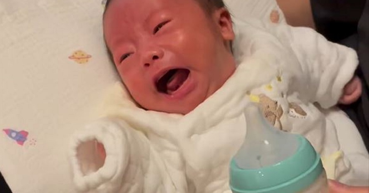 投稿者は2023年に子どもが生まれた、「あかちゃんが産まれましたので」(@aka_taso)さん。今回話題になっているのは、泣いているわが子にミルクをあげた瞬間のリアクションを映したものです。