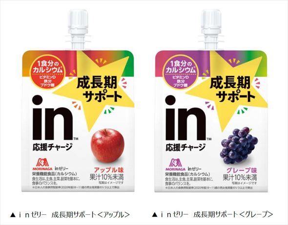 森永製菓は3月19日、「inゼリー」ブランドから、30年の歴史で初となる子ども向け製品「inゼリー 成長期サポート<アップル>」「inゼリー 成長期サポート<グレープ>」を発売します。