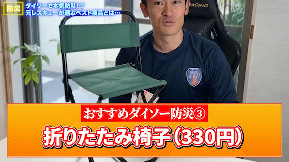 数あるアイテムの中で、タイチョーさんが「一番のおすすめ商品」と太鼓判を押すのは「折りたたみ椅子」(330円)です。