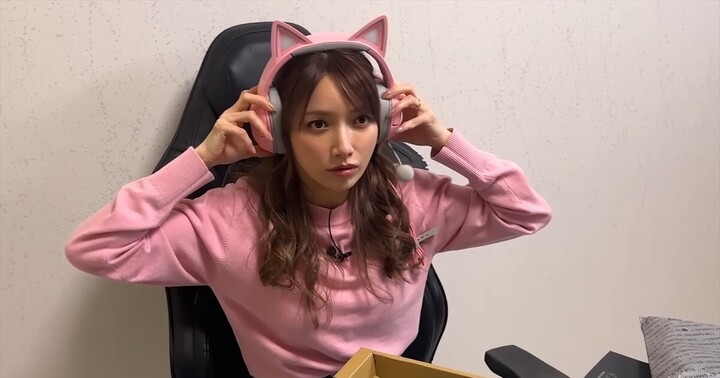 まずは机の配置を決め、ピンクの猫耳ヘッドフォンを開封&装着した後藤さん。偶然にもピンクのファッションとマッチしたキュートな姿を見せますが、キーボードの開封では箱の仕様に手間取り、「はあ? あ、こっちか。絶対開封下手だよね」と素の一面も披露しています。