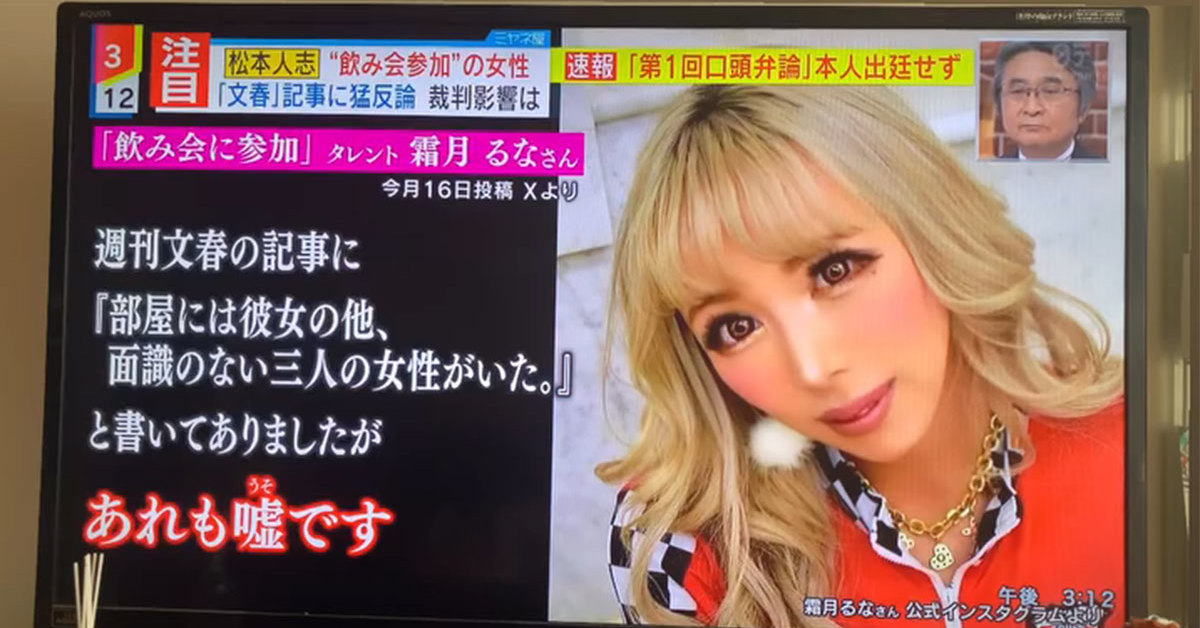 「ダウンタウン」松本人志さんを巡る騒動について言及していたセクシー女優の霜月るなさんが3月28日、Xを更新。「情報ライブ ミヤネ屋」(読売テレビ・日本テレビ系)で自身の主張が紹介されたと報告し、心境をポストしました。