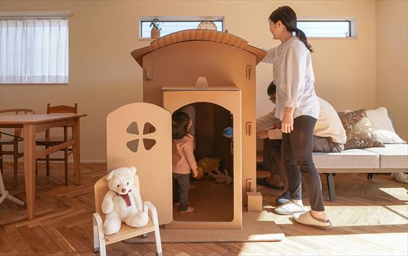 家を建てるときに、一級建築士がダンボールで子どもの家も作ってくれるサービス「ダンボールハウスけんちくじむしょ」を、ハウス成田建設(愛知県)のホロスホームが始めました。