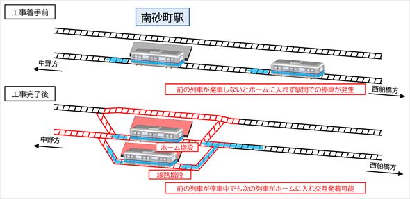 東西線南砂町駅の線路・ホーム増設へ向けた線路切替工事のため。