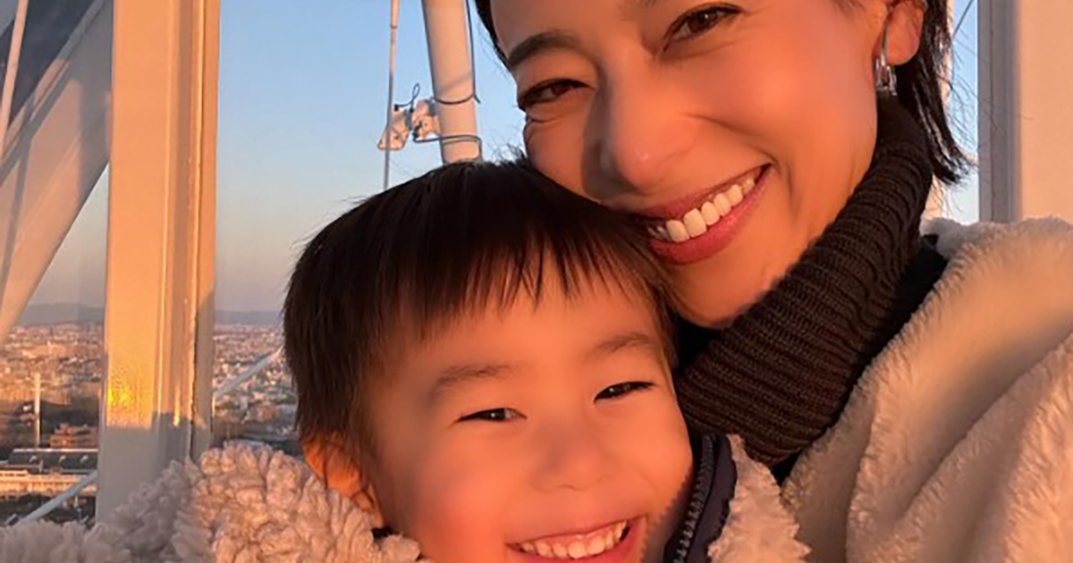 ドバイ在住の小泉里子と息子の親子ショット