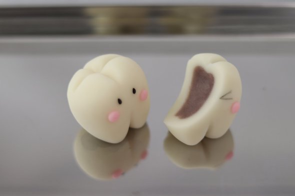この注文を受けて三宅さんが作ったのは、中にあんこがたっぷり詰まったかわいくておいしそうな歯の形のお菓子です。ちなみに「歯の和菓子」を注文するのは、多くが歯科関係のお客さんなんだとか。