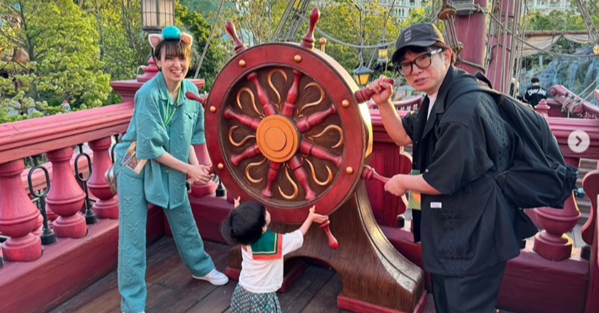 南さんは、夫でお笑いコンビ「よゐこ」の濱口優さんと息子と東京ディズニーシーに訪れた写真を複数枚アップ。