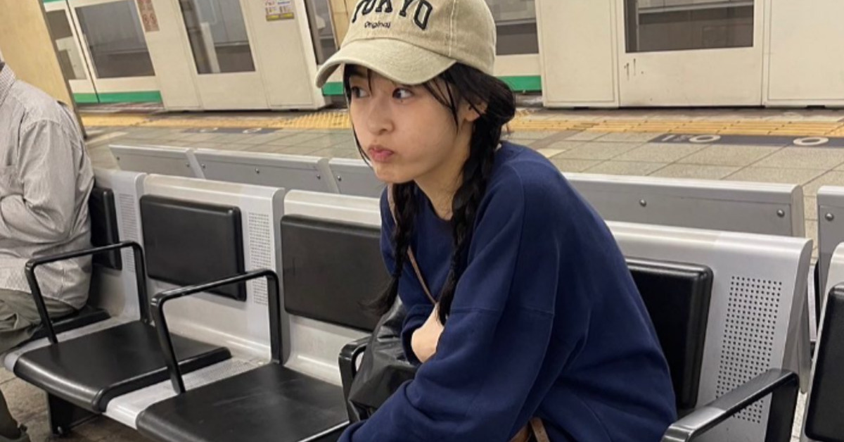 撮影されたのは、駅のホーム。周囲に人は少ないように見えますが、目立った変装はしておらず、分かる人には分かってしまう姿でホームの椅子に腰かけています。