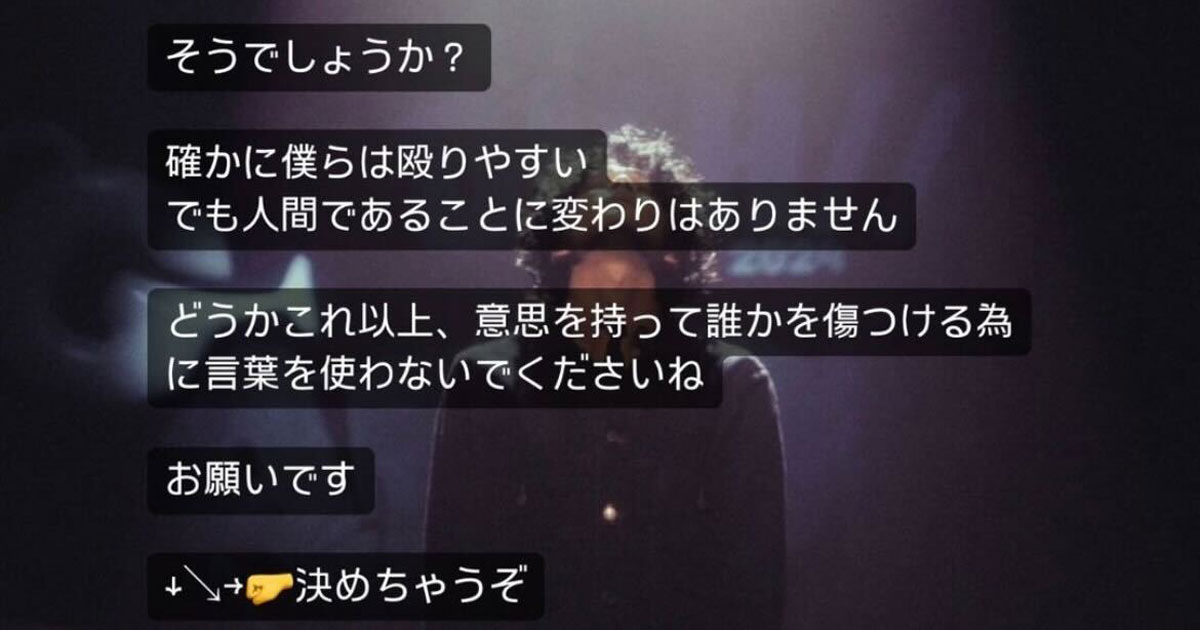続けて、「芸能という世界にいるから仕方がない? そうでしょうか? 確かに僕らは殴りやすい でも人間であることに変わりはありません どうかこれ以上、意思を持って誰かを傷つける行為に言葉を使わないでくださいね お願いです」と警鐘をならしています。