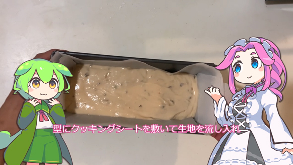 ビンに入れたら、「松ぼっくりのヴァレーニエ」(ロシアの伝統的なシロップ煮)が完成しました! シロップ自体はベリーっぽい酸味と甘さを感じられるそうなのですが、肝心の松ぼっくりはホームセンターの材木コーナーの香りがするそうです……。クセになる味ではあるものの、よりおいしく、食べやすくするため、パウンドケーキにしていきます。