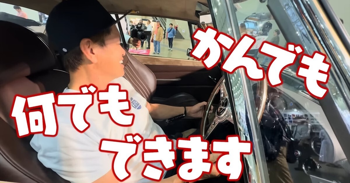 運転席に乗り込んでロマンを味わっており、ブランドスタッフの「文化遺産で残していかないと」とのコメントには、「本当にそうだね」と共感していました。