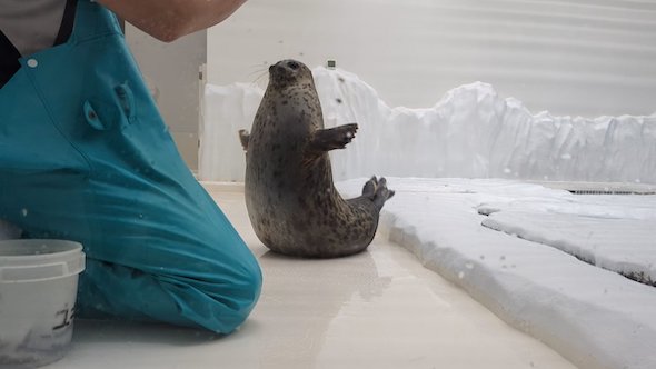 今回話題になったのは、海遊館(大阪府)にいるワモンアザラシ・ユキちゃんの写真。ごはんの時間にトレーニングをする様子を収めたものとのことです。