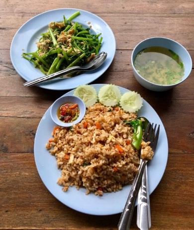 ラオスでも当然炒飯と空芯菜炒め(画像提供:GENKI@一人旅会社員/@weekendtrip_gkさん)