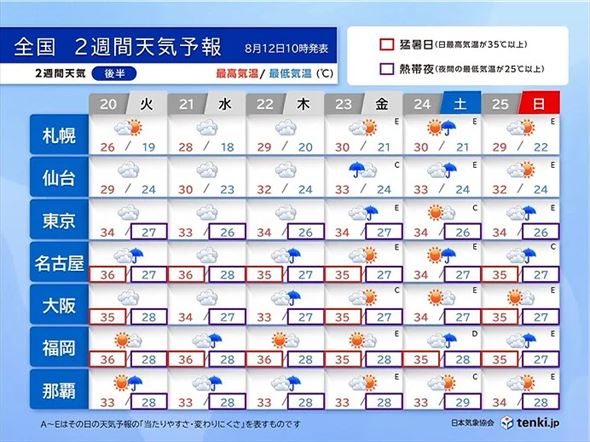 北海道〜関東は雨の日が多い 東海〜九州は危険な暑さ