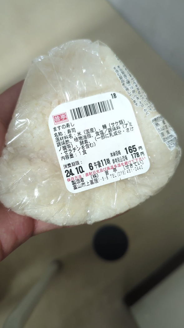 投稿者は、Xユーザーの卵かけごはん(@ManilaCeiling97)さん。写真には、ぺちゃんこに潰れてしまったますの寿しのおにぎりが写っています。