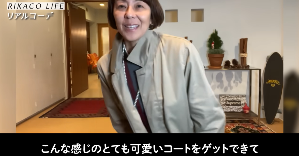 お気に入りのコートを着て笑顔があふれる(画像はRIKACOさんのYouTubeより