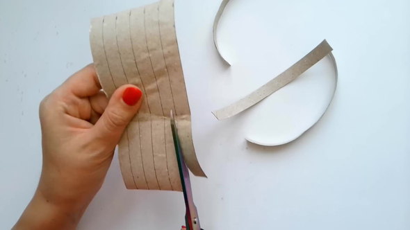 まずは、トイレットペーパーを長方形に広げて、13センチの長さになるように線を書き、余分な部分を切り落とします。1センチ単位で引いた線のとおりにハサミを入れると、細長い紙が大量に出来上がりました。
