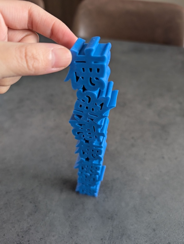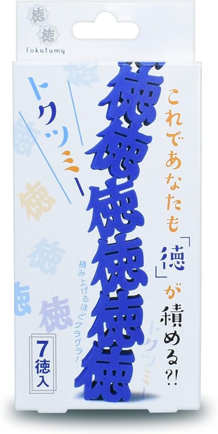 漢字の「徳」の形をした小さなブロックが7個入っていて、それを重ねていくことで物理的に「徳を積む」ことができます。厳しい修行なしでこんな手軽に徳を積めるなんて、良い世の中になったものだ!